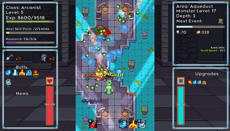 5 82%Game Brain Scoregameplay, graphicsgrinding, optimization82% User Score 445 reviewsPurge the lands in this 2.5D HD-2D Pixelart RogueLike ARPG! Create hundreds of characters with unique strategies and abilities, face hordes of enemies, explore different biomes, procedurally generated dungeons, and obtain unique items!