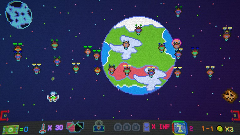 A retro arcade space shooter brings about the new age of color and mayhem! Protect the Planetary Defense Shield (PDS) from the onslaught of the alien Klaxxack invasion. Kill enemies to generate points to power your PDS and your power ups! Decide second by second what needs more points, your offense or defense in this bullet tactical mayhem experience! Recharge, shoot, win! Defen… If you enjoyed this game, see our list of games similar to Quaxum Color Mayhem.