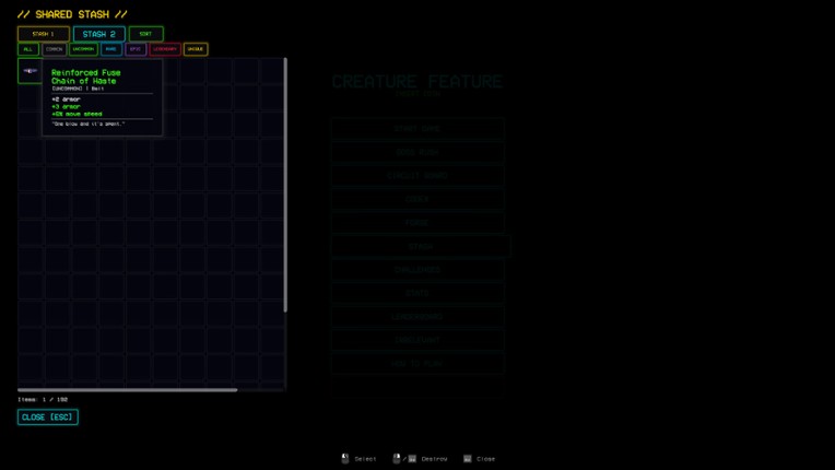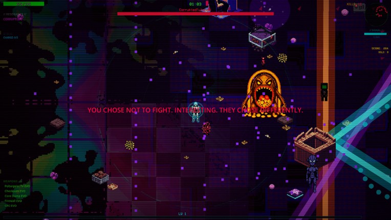You found a bootleg arcade cartridge at a flea market. The label is hand-written: "CREATURE FEATURE."Something is wrong with this game. The sprites move when they shouldn't. The music plays backwards. And the game remembers what you did last run. CREATURE FEATURE is a bullet heaven where every run peels back another layer of a cursed arcade game. Fight through waves of glitched-out crea… If you enjoyed this game, see our list of games similar to Creature Feature.