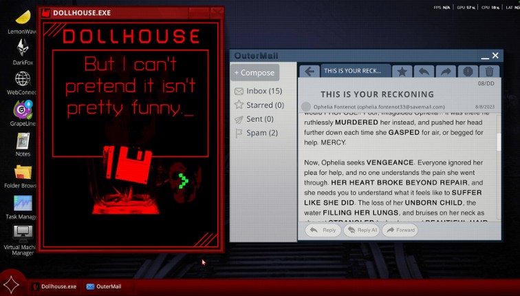 10 95%Game Brain Scorestory, atmospheregameplay, grinding95% User Score 126 reviewsA first-person atmospheric horror-puzzle game that focuses on the narrative to tie together the gruesome world with creative puzzles. Explore the mind of a twisted serial killer who wants nothing else than to show his work of art as well as tell his story to the world.