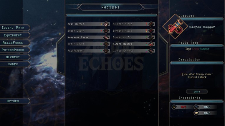 ZODIAC ECHOESZodiac Echoes is a roguelike deckbuilder set in a world of zodiac signs, elemental powers, and spreading corruption. Build powerful synergies, shape your rewards, and face strange enemies warped by an ancient and growing danger. ZODIAC SIGNS, ELEMENTS, AND INVOCATIONSChoose from a cast of zodiac-based characters, each with their own sign, style, and invocation path. Every charact… If you enjoyed this game, see our list of games similar to Zodiac Echoes.