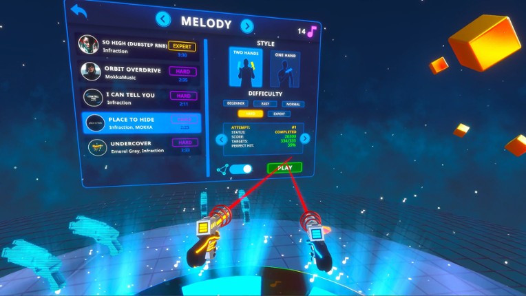 Reach The Beat is an exhilarating VR experience that masterfully weaves action, melodies, and an abstract atmosphere into one dynamic game. Your responsiveness and sense of rhythm become the keys to success, challenging you to shoot targets in sync with incredible tunes. From brightly lit cityscapes to abstract neon scenes, every level in "Reach The Beat" unfolds a world of unforgettable… If you enjoyed this game, see our list of games similar to Reach The Beat.