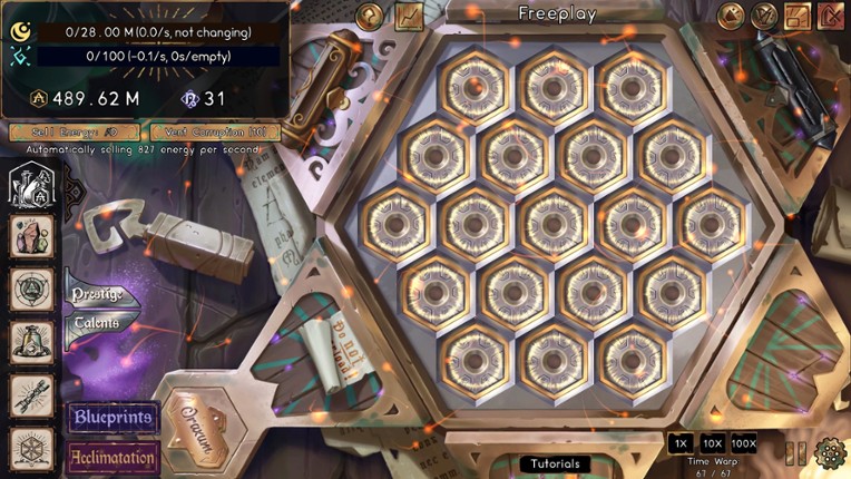 Oraxum Trials is an incremental/idle game where you conduct experiments with the Oraxum, a hexagonal board with magical properties. Harvest souls and use mystical crystals to create wild concoctions. Take on the mantle of soul alchemist and forge your fate, choosing between light and dark forces. If you enjoyed this game, see our list of games similar to Oraxum Trials.