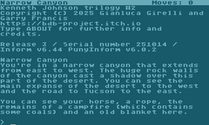 4 View GameBackground This game is an adaptation of the Italian adventure Murray Shannon: L'Orrore di Goldmine City by Bonaventura Di Bello. It was originally published on the cover tape of Explorer, no. 8, June 1987 for the Commodore 64 and MSX. It has now been translated to English and rewritten for a modern audience with the original author's permission. This new version includes many enhancements that …