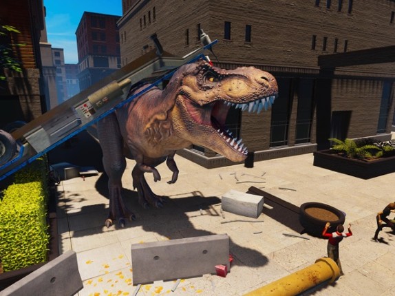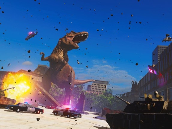 Welcome in T-Rex City the most realistic dinosaur simulator. Tyrannosaurus Rex this dino make charge, stomp and eats. You can go everywhere you like and be a horror to this town. Evolve your dinosaur to dominate the world. Officers will try to stop you by police cars and weapons. Demolish them by using jaws and tail. The military army also knows that you destroy the city. They will be your prey af… If you enjoyed this game, see our list of games similar to T-rex Simulator City World.