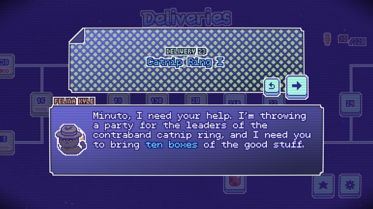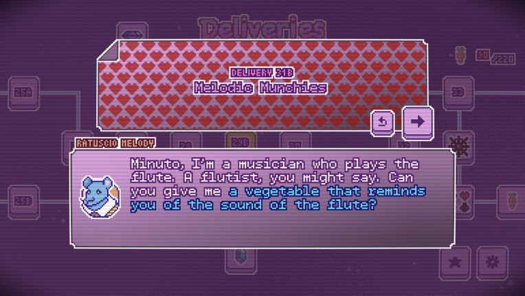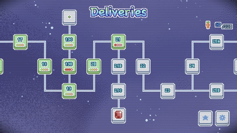 4 61%Game Brain Scorehumor, gameplaymonetization100% User Score 12 reviewsDeliver packages across the galaxy in this cute math-y puzzle game about timing, routes, and strange animal customers. What's Minuto aboutMinuto - Galactic Delivery is a puzzle game about syncing landings across planets. You draw paths, split your ship, and plan everything so your deliveries arrive all at once. There's obstacles, tricky turns, and carrots to get. Pixel place, pixel peo…