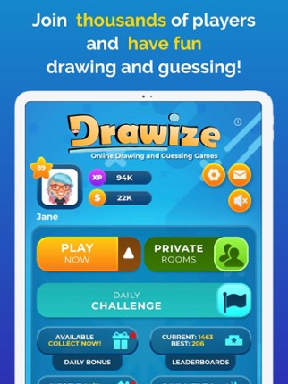 - Custom personalized avatars - Multiple game modes: drawing, guessing, play with friends - Daily challenge: compete with all other players to win the day - Different brushes: pen, brush, spray, paint bucket Drawize - Draw and guess is a fun online drawing game. It is inspired by the well known Pictionary game, but this time right on your smartphone. It is also a guessing game - you earn coins g… If you enjoyed this game, see our list of games similar to Drawize - Draw and Guess.