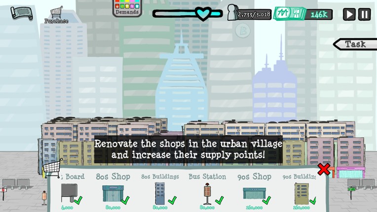 6 77%Game Brain Scorestory, gameplaygraphics, music77% User Score 150 reviewsWelcome to the 1980s! This is a city which just started to develop, and you're in charge of this small urban village. How will the city's future be tied to this place? Manage your land, construct new buildings, explore the stories, and find out the ultimate fate of this urban village!
