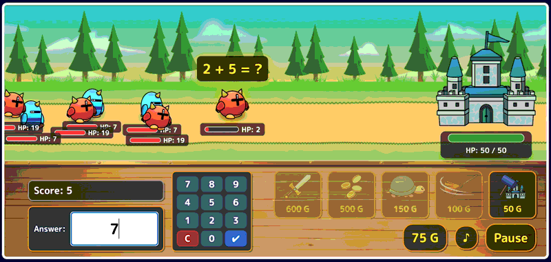 1 The original Japanese version of this game is also available at the following link. 日本語版でプレイしたい方はこちら (Click here to play the Japanese version) ARITHMETIC HOUR DEFENSE is an exciting educational game that fuses arithmetic drills with classic tower defense. Your castle is under siege by a horde of adorable monsters, and your greatest and only weapon is your brain! Click on a monster, solve …