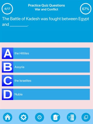 Get ancient egypt history,culture,life and society knowledge using an intuitive and cool quiz interface. In the meantime study and learn about archaic egypt times using simple and effective flashcard screen. This app will help you explore the egyptian history,culture and life in depths. Our app content suitable for history enthusiasts, students, teachers and researchers. Once you have downloa… If you enjoyed this game, see our list of games similar to Ancient Egyptians History Quiz.