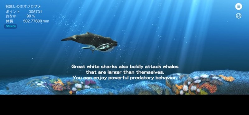 An app specializing in sharks that allows you to grow great white sharks and gather shark friends. ● Great white sharks also attack whales that are larger than themselves. You can enjoy a powerful predation scene. There are 5 sizes of sharks, SS, S, M, L, LL, and there are similar sizes for food, and 14 variations are available. The points that can be obtained vary depending on the type, and the … If you enjoyed this game, see our list of games similar to Great white shark breeding AR.