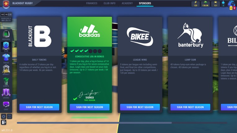 7 60%Game Brain Scoregraphics, atmospheregameplay, stability60% User Score 88 reviewsBlackout Rugby is a modern, multiplayer, social, world class Rugby Manager Game. Take control of a novice rugby club and sidestep and fend your way to glory. Take on people all around the world as you strategise, conquer the league, battle your way up the ladder, and build up your club infrastructure.