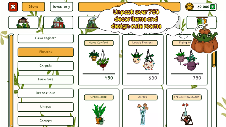 Home Garden Lulu is a cozy simulator game in the style of cottagecore and goblincore. In this cute game, you can create a beautiful greenhouse with frogs, rare flowers, and plants. If you enjoyed this game, see our list of games similar to Home Garden Lulu.