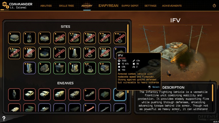 The battle for the Empyrean Realm has begun. A ruthless enemy commander has launched a full scale invasion, searching for the Empyreal Core, an ancient secret technology hidden deep within the realm. As the last line of defense, you must deploy, upgrade, and adapt a wide array of military, economic, and support sites to survive increasingly intense enemy assaults. Empyrean Defense is fast paced, … If you enjoyed this game, see our list of games similar to Empyrean Defense.