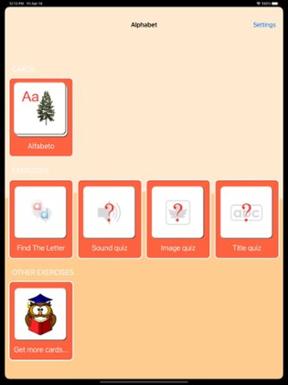 A set of colorful cards and three exercises for learning letters. You can also personalize any card, change an inscription, and record your own voice. To do this, press “Change” button on the cards list screen, then press the blue “Edit” button which will pop up in the upper right corner of each card. If you enjoyed this game, see our list of games similar to Italian Alphabet Cards.