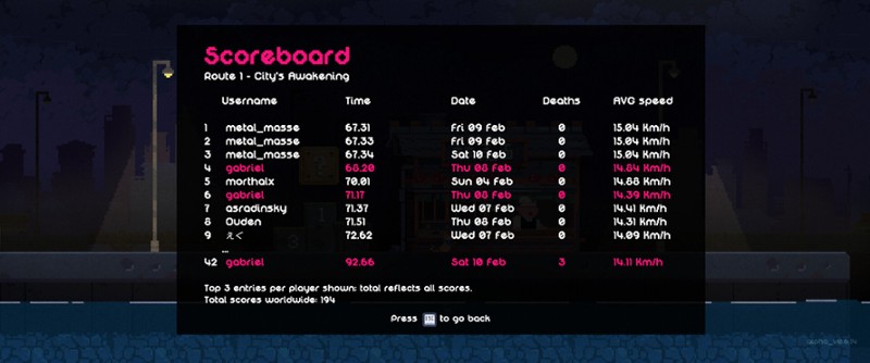 9 58%Game Brain Scoremusic, gameplaygraphics, atmosphere88% User Score 17 reviewsHirocato is a fast-paced side scroller loaded with hard-to-beat levels, great music, gorgeous pixel art and an emotional subtle story. Control Cato while running through an exciting city delivering food while discovering the hidden truths behind Cato's world downfall - Welcome to Hirocato.