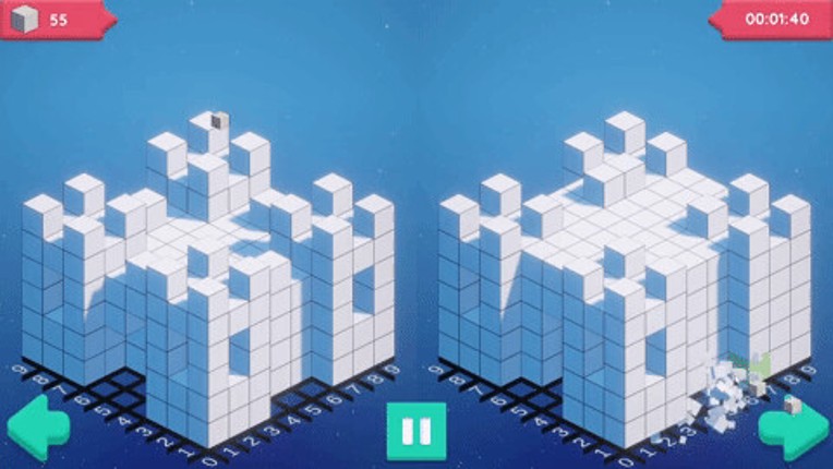Welcome to SCULPT. 'Sculpt' comprises 30+ meticulously crafted puzzles in a 3D grid-based game solvable through logic. When sculpting, focus on your left; carve outward on your side of the screen. It starts easy but gets tougher as you progress. Make a duck or sculpt out a castle. Some levels feature bomb blocks for faster progress but come with the risk of ruining your sculpt. Or demonstrate your… If you enjoyed this game, see our list of games similar to Sculpt.