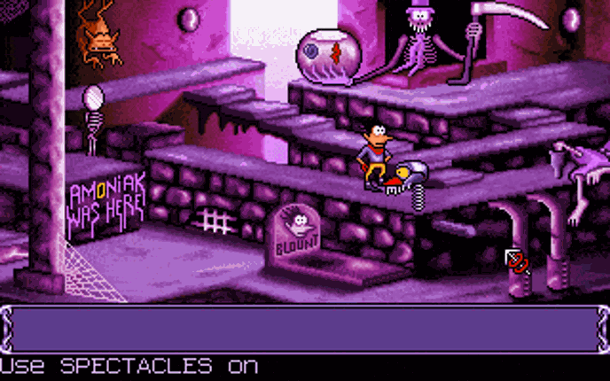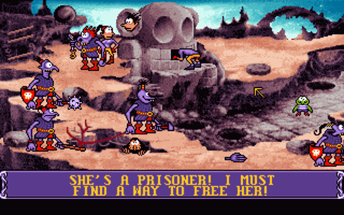 In this game, there is only one goblin, Blount, rather than the previous three and two goblins found in the first and second game (hence the name having one "i" instead of two or three). The hero gets assistance from a number of sidekicks throughout the game including Chump the parrot, Ooya the magician, and Fulbert the snake. Blount is also eaten by a wolf early in the game and after escaping fro… If you enjoyed this game, see our list of games similar to Goblins 3.