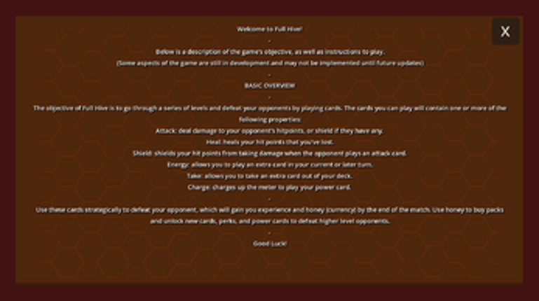 10 Welcome to Full Hive! (Game is too large to be played in web unfortunately :[ ) Feel free to join our discord for any updates and to submit bug reports: https://discord.gg/H99JzSqfCk Below is a description of the game’s objective, as well as instructions to play. (Some aspects of the game are still in development and may not be implemented until future updates) BASIC OVERVIEW The objecti…