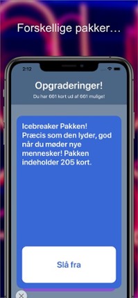 Det klassiske jeg har aldrig festspil i en ny og forbedret udgave. Lær dine venner bedre at kende, eller bryd isen i nye selvskaber! Med et lækkert design kan du i appen swipe dig igennem mere end 650 kort! I appen er der 4 forskellige kort pakker, den første får du gratis! Er de andre købt kan du vælge mellem en eller flere af pakkerne an på hvem du spiller med, eventuelt for at undgå akavede el… If you enjoyed this game, see our list of games similar to Jeg har aldrig Festspil.