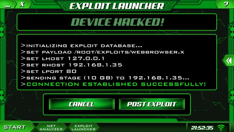 5 74%Game Brain Scorestory, gameplaygrinding, stability74% User Score 1,286 reviewsBecome a hacker and build your online reputation to the top by discovering a simplified and enjoyable version of real-life hacking methods. Complete contracts, buy new programs, upgrade your computer, crack wifi networks and infiltrate peoples or companies online systems.