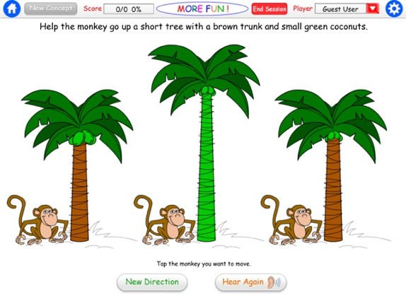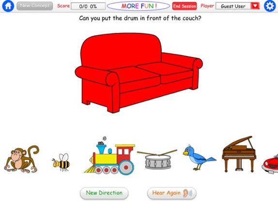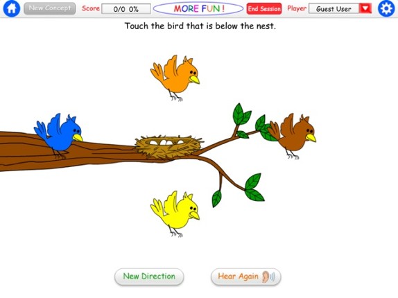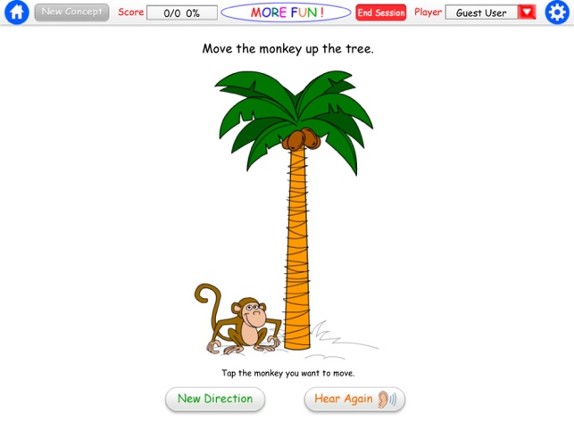 If you liked our “Fun with Directions” app, you’ll also love More Fun with Directions too! This iPAD app continues with the same playful, colorful and engaging format with a focus on 12 concepts: turn on/turn off; up/down, front/behind, on/under, put in/take out, above/below. For a demonstration of this app, check out our YouTube video: http://www.youtube.com/watch?v=8zAm7HSenSQ Help the monk… If you enjoyed this game, see our list of games similar to More Fun With Directions HD.