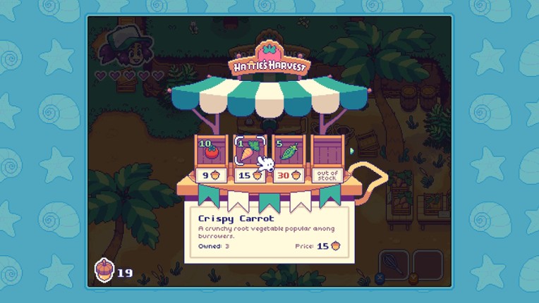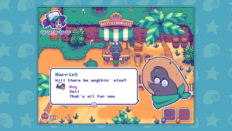 Moonshell Island is a story-driven action adventure where laid-back island living meets heroic ambition as you journey to bring together a community of dreamers and get to the root of a produce mutation that threatens their way of life. OBJECTIVESYou wake up on Moonshell Island and are taken in by club founder Crabby, but your arrival coincides with the beginning of a dangerous mutation turning p… If you enjoyed this game, see our list of games similar to Moonshell Island.