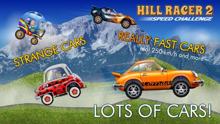Extreme speed - extreme variety - extreme fun! NEW: Mow down trees with the skidder! Classic cars, sports cars, antique cars, tanks, trucks, monstertrucks and more! Pure physics fun - drive, race, climb the hills and jump until you nearly fly! Careful landing is recommended… or you’ll find yourself broken into pieces. Varied hills and mountains are waiting for you! - Many cars in many variation… If you enjoyed this game, see our list of games similar to HILL RACER 2.