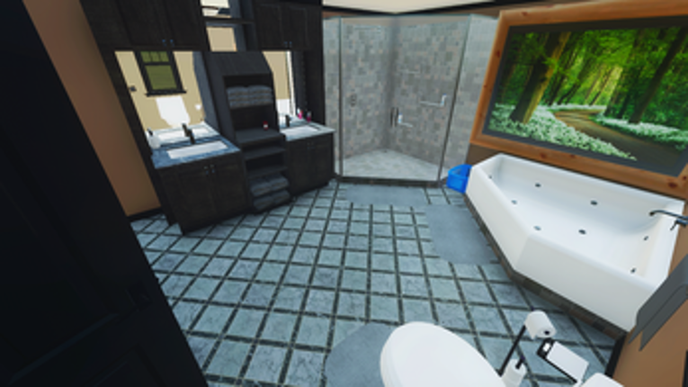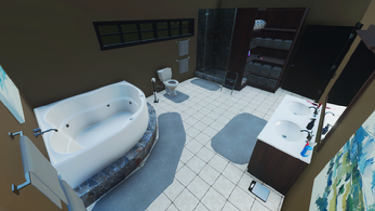 This is a detailed house consisting of 5 bedrooms including a Master Suite and a Guest Room, 3 bathrooms, Kitchen/Dining, Laundry Room, Living Room, Office, Game Room, a small Movie Theater, a back deck with jacuzzi, an attached 4-car garage as well as a 75x90 shop building. Now available with color selectable options. If you enjoyed this game, see our list of games similar to ACH25 House 5Bed3Bath.