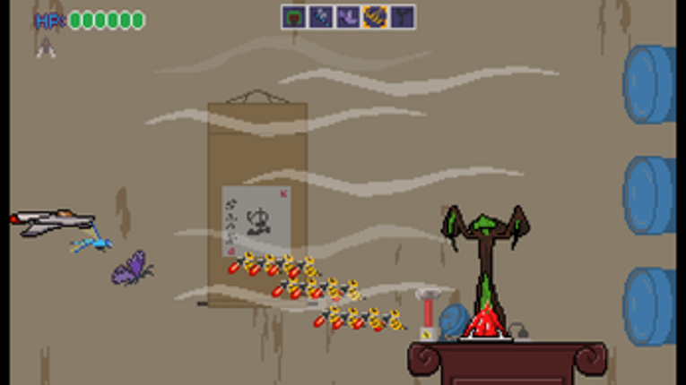 The bugs around you look… different. They’re also strangely hostile. Except for the cockroaches. They’re always hostile. Get in your trusty ship, the Karapace, and fight your way to the mastermind in this shoot ’em up! Controls WASD/Arrow keys - Move the ship Z/J - Shoot bullets, menu cancel X/K, C/L - Cycle through weapons X/K - Menu confirm Enter/H - Pause Credits mysterypaint - Programming… If you enjoyed this game, see our list of games similar to Bug at Liberty.