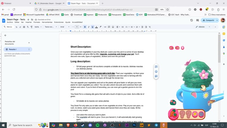 Tiny Desk Pot is an idle farming game with a lo-fi vibe. Plant your vegetables, let them grow and harvest them once they are ready. Get new vegetables and new soils to farming with the plants you collected and unlock new types all through the terrain tree. You can upgrade your vegetables and soil so the plants will grow faster or will give you more plants for each vegetable you collect. Yo… If you enjoyed this game, see our list of games similar to Tiny Desk Pot.