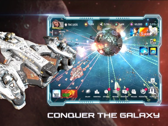 7 82%Game Brain Score82% User Score 1,812 reviewsClash with rivals in powerful cosmic spaceship battles, manage futuristic resources, and build planetary facilities on countless worlds, an epic planetary colonization adventure awaits! Build your own space starship fleet command, customize it with powerful weapons, and command it either solo or with an alliance team to conquer the galaxy! Bid to become the absolute galactic imperator in this epic…