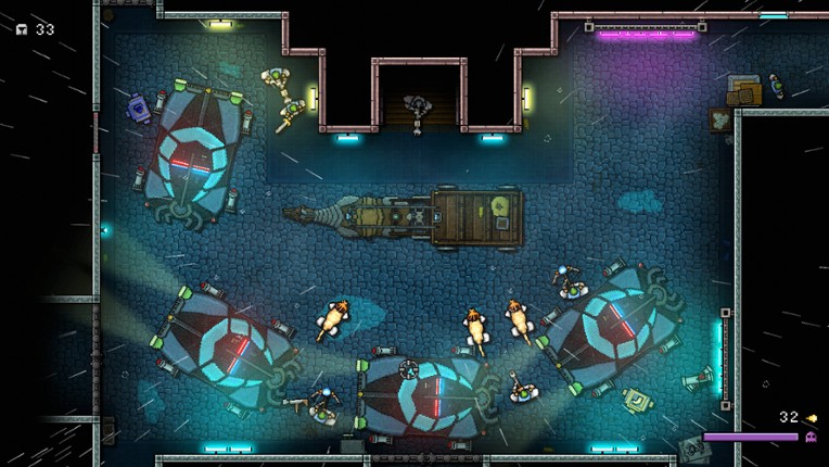 3 93%Game Brain Scoremusic, gameplaygraphics100% User Score 44 reviewsAn explosive, story-driven top-down shooter with vibrant pixel graphics and a pumping soundtrack. Fight your way through hallways of castle-like spaceships, neon lit alleys and futuristic medieval fortifications using an array of powerful weapons and special devices.