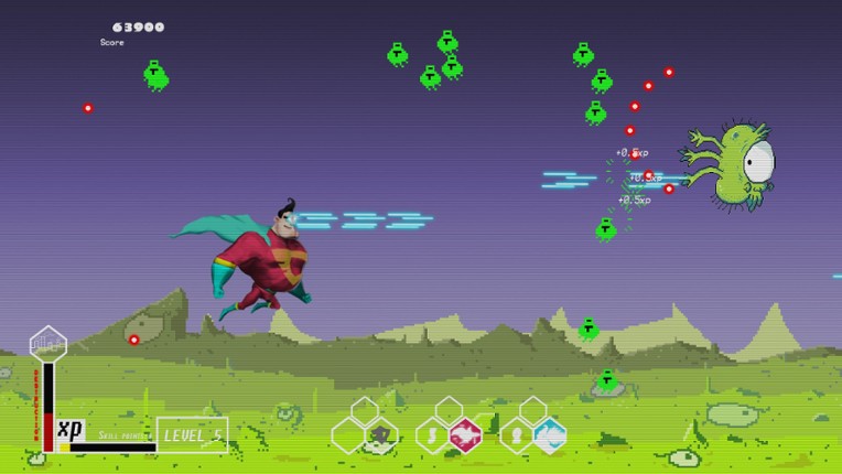 9 Super Captain 3D is a shoot-em-up game where you become a Super Hero ready to fight the Pixel Invaders. It features an art style that combines 3D pre-renders with 2D pixel art. Use your Superpowers to protect the Universe!
