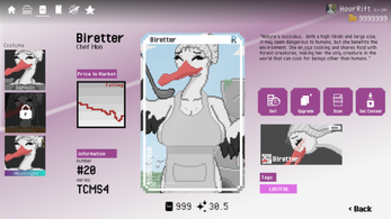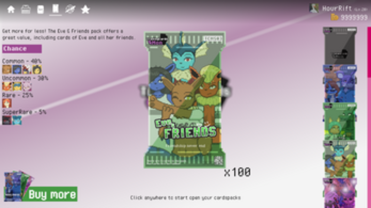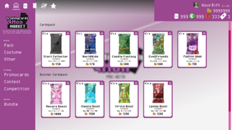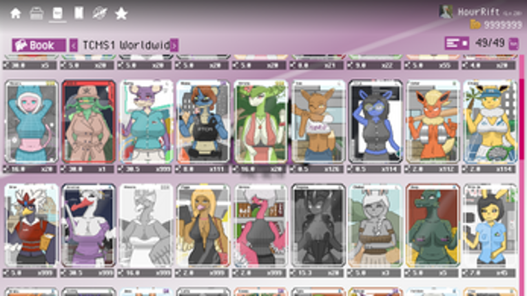 TradingCardsMon v0.2.7 ( pre-Beta ) Welcome to Trading Cards Mon, the new open cards pack and collect cards simulator game that brings the thrill of collecting and trading cards to your fingertips! Immerse yourself in the Another world of Cute, Cool, and Sexy Mon cards as you owing your best Mon Card collection in the world Current Event join our discord for more ( Event, giveaway ,free gift… If you enjoyed this game, see our list of games similar to TradingCardsMon v0.2.7HF ( pre-Beta ).
