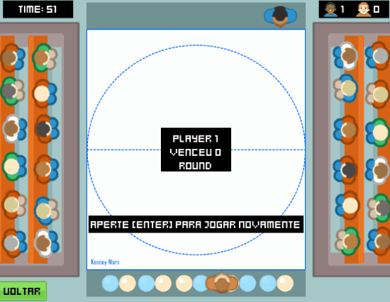 What is Kenney Wars: A multiplayer party game, the objective is to throw all the balls from your field to the opponent's, wins whoever puts 10 balls in the enemy's field first, or whoever has the fewest balls in their field when time runs out. Controls: You can play using controls or keyboard: Player 1: A, D e SPACE (Keyboard) or D-PAD e B (Controller 1) Player 2: Arrows e NumPad1 (K… If you enjoyed this game, see our list of games similar to Kenney Wars.