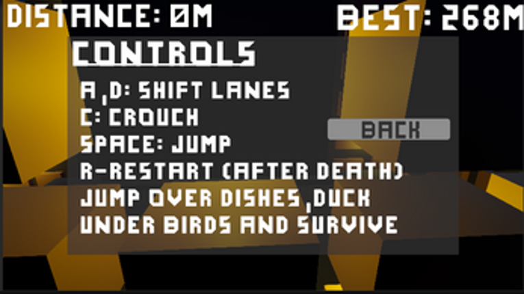 How to Play The goal is simple: survive as long as possible. A / D – Switch lanes Space – Jump C – Slide R – Restart after death Obstacles will force you to choose quickly whether to jump, slide, or change lanes. As you run further, the game speeds up and gaps between rooftops become more challenging. Gameplay Features 2.5D infinite runner gameplay Three-lane mo… If you enjoyed this game, see our list of games similar to Rooftop Ninjas in 3D!.