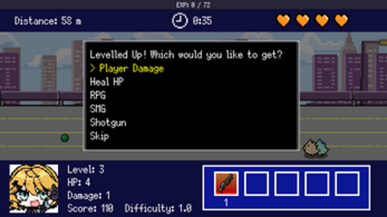 2 Blast through waves of quirky enemies in this fast-paced 2D lane shooter! Dodge, level up, and upgrade your gear as you fight to stay alive. Mix and match weapons, boost your stats, and see how long you can last! Controls: Move the character with WASD or the Arrow Keys.Navigate the Level Up menu to select an option.Toggle healthbars on enemies with H.The healthbars are off by default.Shoot wit…