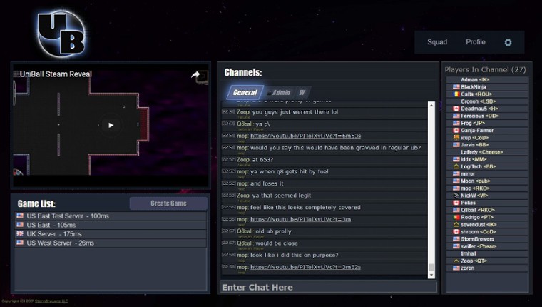 One of the longest running independent games on the Internet, UniBall has evolved from a simple version of space hockey into an online multiplayer e-sport that is uniquely its own. If you enjoyed this game, see our list of games similar to UniBall.