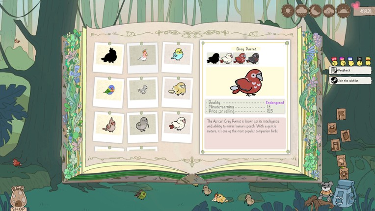 Little Aviary is a cozy idle bird collector that sits at the bottom of your screen! Hatch unique birds, sell them, decorate their home, then watch them fly around your screen and perch on top of your other windows! Designed to be played while you're doing other things, the game can be zoomed in/out and moved up/down so it doesn't get in your way. DISCOVER NEW SPECIESComplete your collection of ov… If you enjoyed this game, see our list of games similar to Little Aviary.
