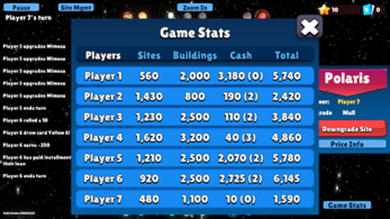 Enjoy a PC trading board game with starbiz. Play against AI or with family and friends. Featuring unique elements like lotteries and property appreciation draws. Manage loans, upgrade, downgrade, and sell properties with site management. Relax and enjoy the game. starbiz offers a modern twist on the classic board game experience, combining strategy, luck, and financial management in a fun and enga… If you enjoyed this game, see our list of games similar to Starbiz.