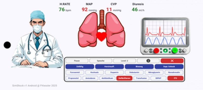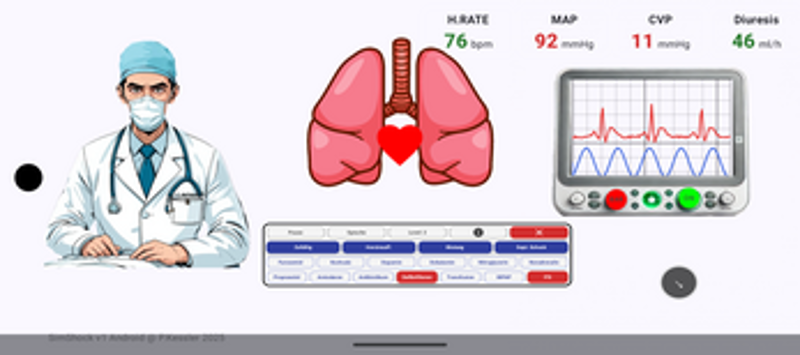 SimShockandroid is a unique hemodynamic simulator — a medical-strategy game that combines realism, challenge, and a touch of fun. You’ll face critical scenarios such as shock, heart failure, or hemorrhage, where you must apply treatments (dopamine, nitroglycerin, antibiotics, transfusion, etc.) and observe the patient’s real-time evolution. This game is not intended for professio… If you enjoyed this game, see our list of games similar to SimShockandroid.