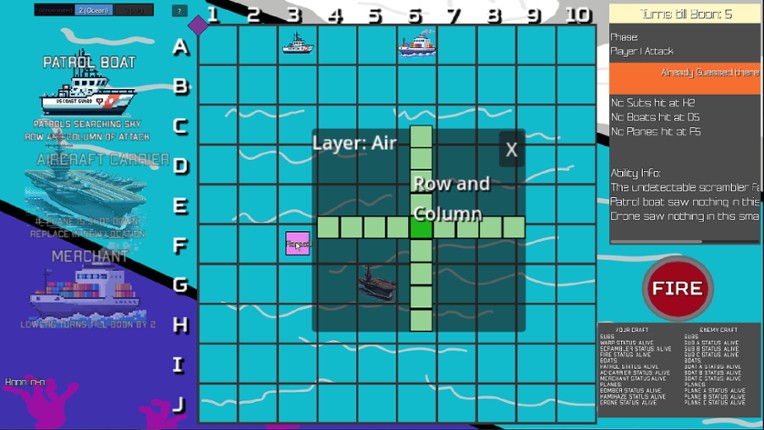 6 Have you ever played a ship based guessing game and thought to yourself, this is boring? If only there were airplanes and submarines. Well now you can play three dimensional Craft based guessing game with abilities. Have no friends? No worries you can play against a battle trained AI? Just try to beat it on the hardest difficulty, I bet you can't. Have friends? Then teach me how to make them mysel…