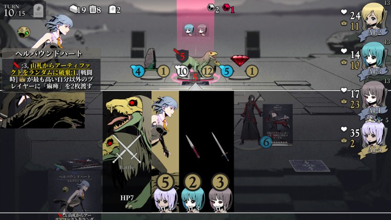 "Unlight:SchizoChronicle" is a real time deck building game. Every turn each player purchases cards and fights against monsters. If you purchase a card, if that card gets added to your deck and you win the battle with the monster you get a "sherd point". Strategically build and strengthen the deck and earn more "shade points" than other players! If you enjoyed this game, see our list of games similar to Unlight:SchizoChronicle.
