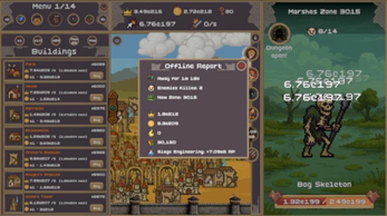 Incremental Kingdom blends the addictive satisfaction of an idle clicker with the depth of kingdom-building and layered progression systems. Fight through endless waves of monsters, defeat powerful bosses, and push your way through increasingly dangerous stages. Every victory fuels your kingdom’s growth — allowing you to construct buildings, recruit heroes, unlock research, and discover powerful … If you enjoyed this game, see our list of games similar to Incremental Kingdom.
