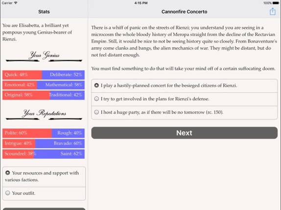 6 The uprising continues! You fled the armies of the Hegemony into a nightmare wilderness. Now escape the storms of chaos magic to spread the flames of rebellion in your homeland’s capital. Choice of Rebels: Stormwright is an interactive epic fantasy novel by Joel Havenstone, the sequel to Choice of Rebels: Uprising, where your choices control the story. It's entirely text-based, without graphics o…