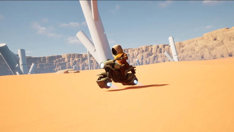 In the midst of a sea of glowing dunes, unreal white monoliths pierce the skies of planet Onora. You emerge from a landing capsule — alone and disoriented — and mount a futuristic bike to reach these desert cathedrals. Beneath their arches, the sand gives way to lush biomes where the ruins of a forgotten civilization still linger. Each sanctuary shelters living puzzles: bond with the local fauna … If you enjoyed this game, see our list of games similar to Onora.