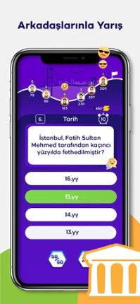 4 91%Game Brain Score91% User Score 290 reviewsBilgi, eğlence ve rekabet bir arada! Üstelik reklamsız ve ücretsiz! Türkiye’nin en eğlenceli bilgi yarışması ile bilgini test edebilir, ailenle, arkadaşlarınla ve rakiplerle yarışmanın keyfini sürebilirsin. Güncel ve kaliteli binlerce soru ile rakiplerine meydan oku, karakterini en güzel jokerlerle taçlandır ve liderlik sıralamasında yerini al! Genel kültür, spor, bilim, tarih, coğrafya, sanat v…