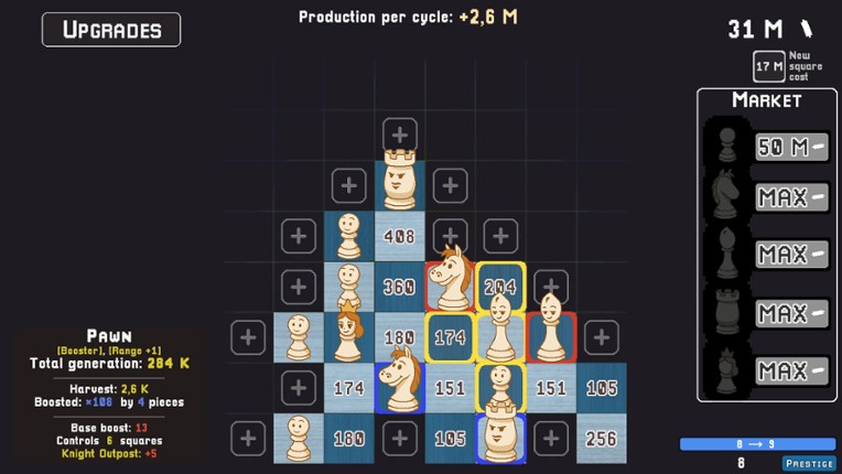 7 53%Game Brain Score53% User Score 7 reviewsA WAY-TOO-COMPLEX INCREMENTAL GAME It looks like chess, it feels like an idle game, but it plays like "How do I even optimize this?". Forget upgrades that give 5% here and 10% there, this new take on incremental games forces you to actually think about the perks you buy and adapt how you play in consequence. YOUR GOAL IS SIMPLE: Buy all 25 squares of the board! WHAT YOU ACTUALLY DO …