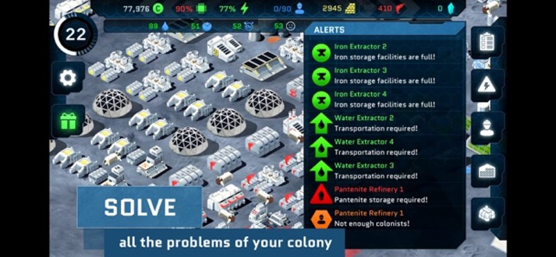 Build and manage your space colony in this city building game. Welcome to Pantenite Space Colony - a sci-fi city building simulator where you can build a permanent space settlement. An economic simulation game; extract, produce and sell goods. Design you city to your heart's desire! Every decision is yours to make as your peaceful colony grows into a sprawling mega settlement. Develop your … If you enjoyed this game, see our list of games similar to Pantenite Space Colony.